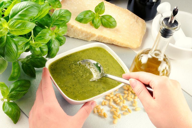 Dalla raccolta del basilico alla preparazione della famosa salsa ligure seguendo la ricetta tradizionale, un corso di preparazione del pesto è un modo divertente per trascorrere un'ora.